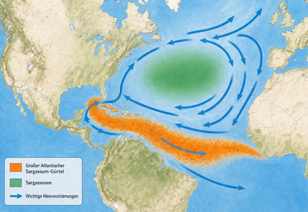 Seit gut 15 Jahren jagt eine Rekordwelle die nächste. Zeitweise zieht sich über Monate hinweg ein mehrere tausend Kilometer langer Braunalgengürtel durch den Atlantik, bis hinein in die Karibik. Der Große Atlantische Sargassum Gürtel.