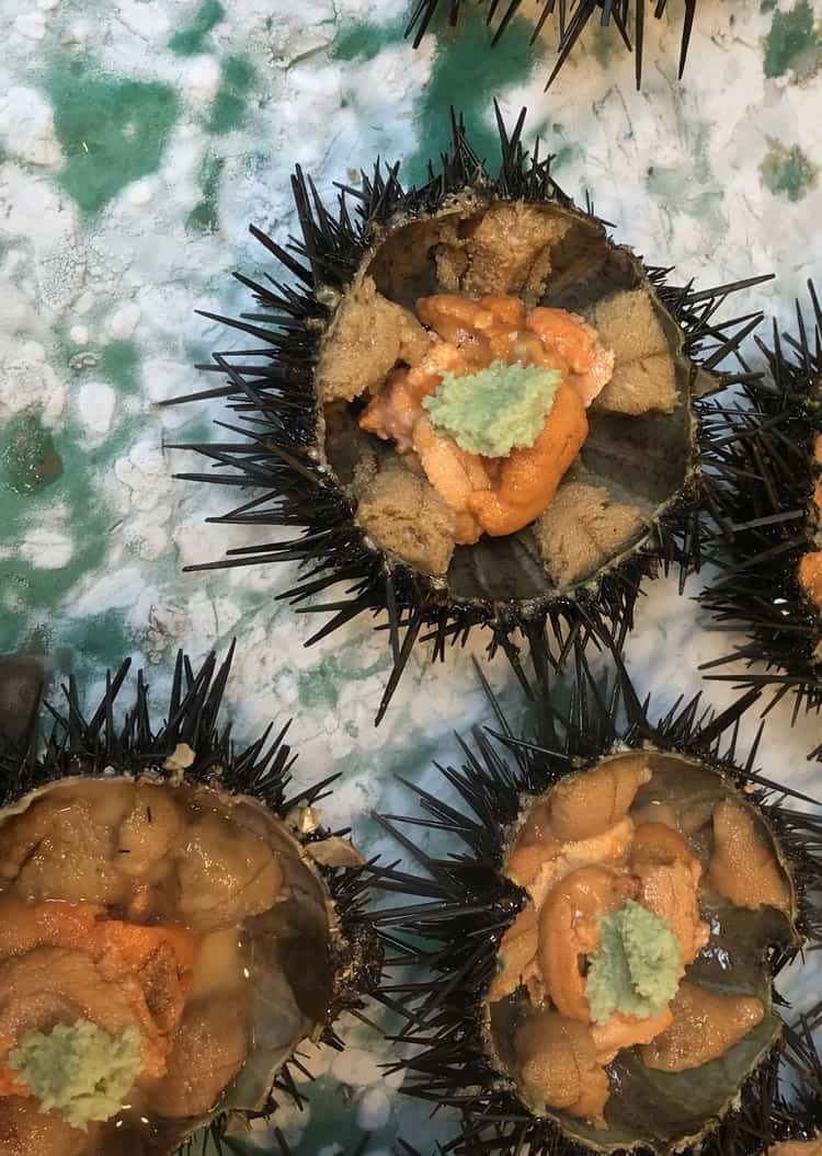 Es lässt sich nicht mehr wegdiskutieren. Unser Japan-Trip ist fast vorbei. Heute der letzte ganze Tag ohne Umzug. Wir haben uns für morgens den Tsukiji-Fischmarkt vorgenommen. Dort ist zwar nicht der ganz große Fischmarkt mit Tunfischauktion und allem pipapo – aber dafür wars heute morgen im Bett eh zu gemütlich, wir sind nicht ganz so früh dran heute. Aber gerade rechtzeitig, um mit ein paar Häppchen vom Stand das Frühstück zu kompletieren.